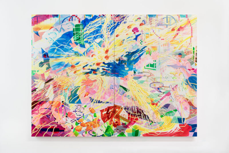 Symbiosis (Cafeteria), 2025. 72” x 98”, acrylic on canvas, two panels.